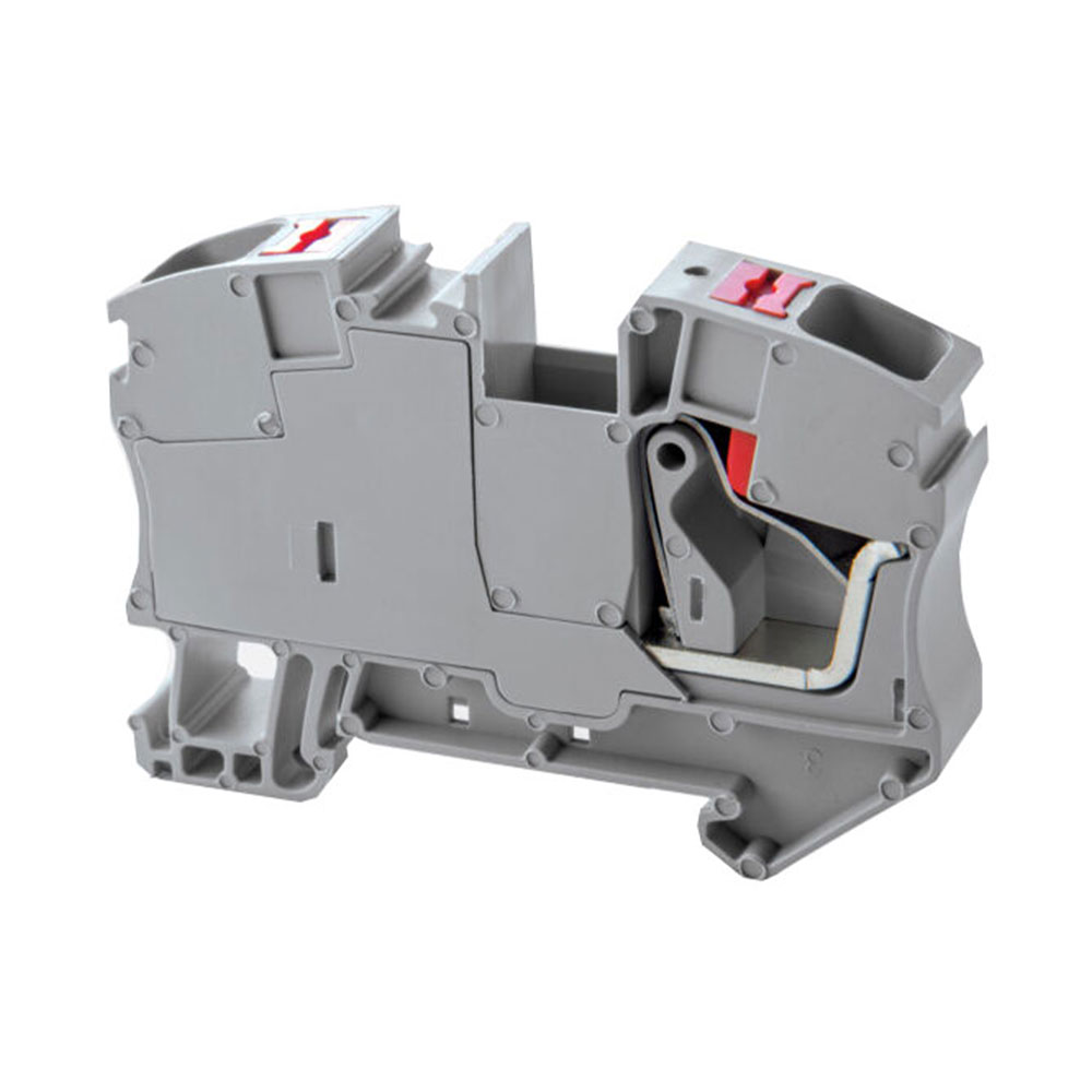 معرفی | معرفی ترمینال فشاری سایز ۱۶ مدل RT-PG16-RPIT16 رعد | ترمینال فشاری سایز ۱۶ مدل RT-PG16-RPIT16 رعد، نوعی وسیله جهت استفاده بین سیمها بوده که اتصالاتی مطمئن و استاندارد را ایجاد میکند و قابلیت نصب بر روی ریل TH35 را دارد. این نوع ترمینال در مقایسه با سایر آن ها، فضای کمتری را نیاز داشته و مناسب اتصالات تک فاز و سه فاز است. بدنه عایق شده پلی آمید در این ترمینال، موجب مقاومت بالای آن در برابر حرارت و آتش سوزی شده است. این وسیله برای کابلهای تک رشته یا چند رشته با سطح مقطع مختلف درپوشها و پارتیشنهای مشترک کاربرد دارد. این ترمینال برند رعد، با سطح مقطع ۱۶ میلیمتر مربع ساخته شده و با انواع رنگ بدنه به فروش میرسد.
