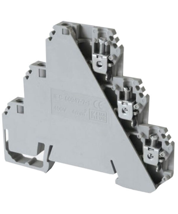 معرفی | معرفی درپوش انتهایی ترمینال پیچی سایز ۲.5H-10 مدل EP-RTP2.5H-10 رعد | درپوش انتهایی ترمینال پیچی سایز ۲.5H-10 مدل EP-RTP2.5H-10 رعد، به عنوان محافظ ترمینال پیچی استفاده می‌شود. این درپوش در قسمت آخر ردیفی که انواع ترمینال‌ها و سایزها قرار دارند، جهت حفاظت قرار داده می‌شود و همچنین بدنه عایق شده پلی آمید در این درپوش، موجب مقاومت بالای آن در برابر حرارت و آتش سوزی شده است. ابعاد این درپوش ها باید منطبق با ابعاد ترمینال استفاده شوند و توسط بست‌های انتهایی محکم می‌شوند. این محصول، مناسب ترمینال پیچی با سطح مقطع ۲.5H تا ۱۰ میلیمتر مربع بوده و در انواع رنگ بدنه به فروش می‌رسد.