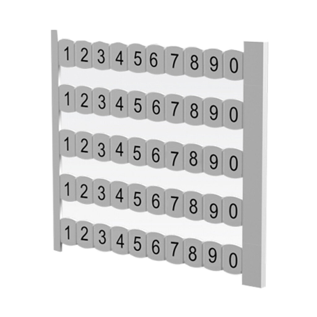 شماره ترمینال مدل سایز NS6.4 رعد | شماره ترمینال مدل سایز NS6.4 رعد، جهت علامت گذاری ترمینالهایی با عرض ۶.۴ میلیمتر مورد استفاده قرار میگیرد. این صفحات شامل ۵ نوار و هر نوار دارای ۱۰قسمت است که قابل نصب بر روی ترمینالهای RDT4, RTP4, DRTP4, TRTP4, RET4 است. صفحات NS از مواد پلی آمید تولید شده که موجب مقاومت آن در برابر حرارت و آتش سوزی شده است و همچنین شیوه چاپ علائم بر روی NS ها به گونهای بوده که امکان پاک شدن آنها وجود ندارد.