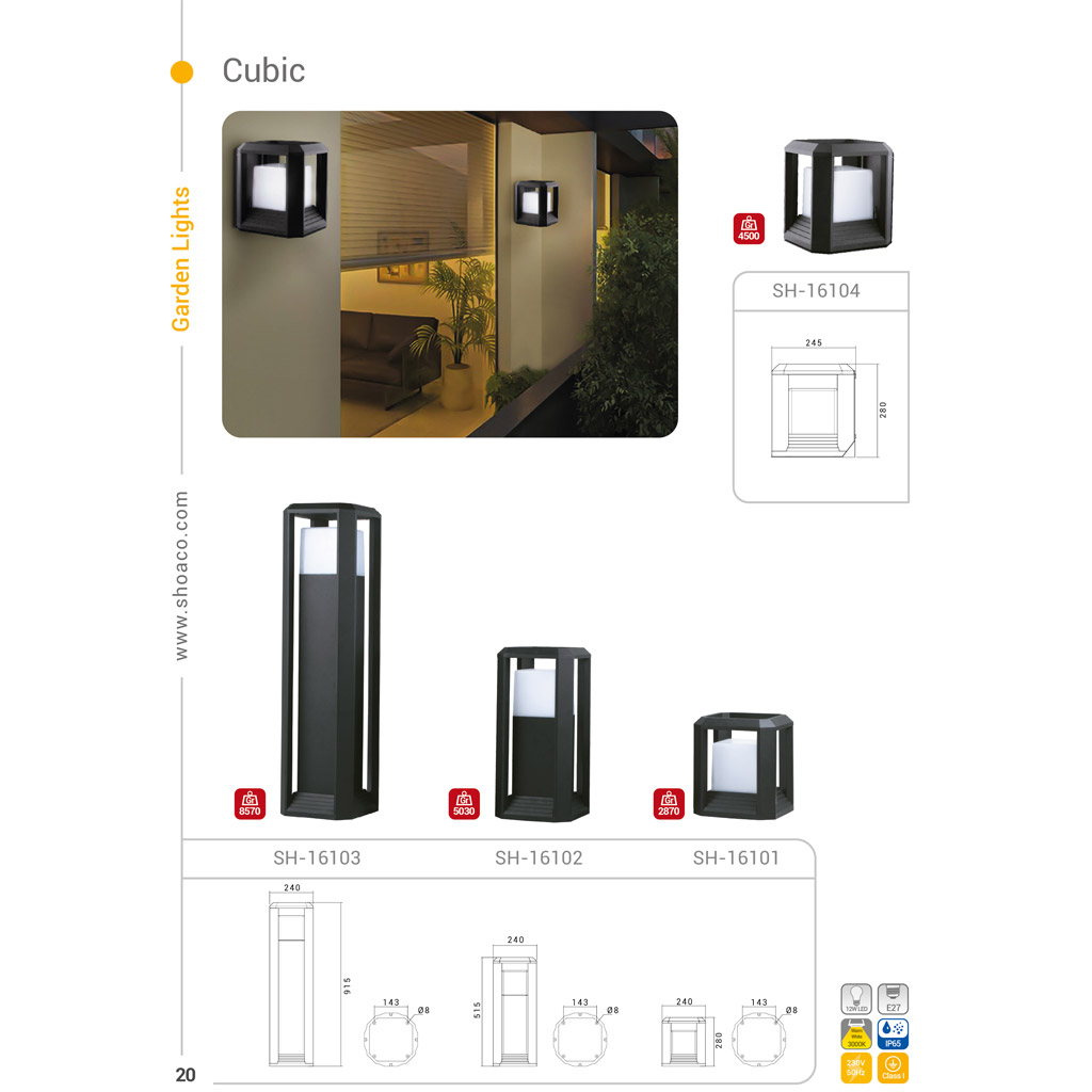 چراغ دیواری شعاع مدل SH-16104 | این چراغ دیواری با عنوان مدل SH-16104 یکی از محصولات شرکت شعاع می‌باشد. این مدل با جنس بدنه آلومینیوم و البته طراحی زیبا و چشم نواز در فضاهای باز قابل استفاده می‌باشد. این مدل چراغ دیواری از درجه حفاظتی نوع IP65 برخوردار است. همچنین با دیفیوزر از جنس پلی کربنات َAnti UV و سرپیچ از نوع E27 و با توجه به مقدار نور مورد نیاز ازین چراغ میتوان برای فضاهای مدرن استفاده کرد.