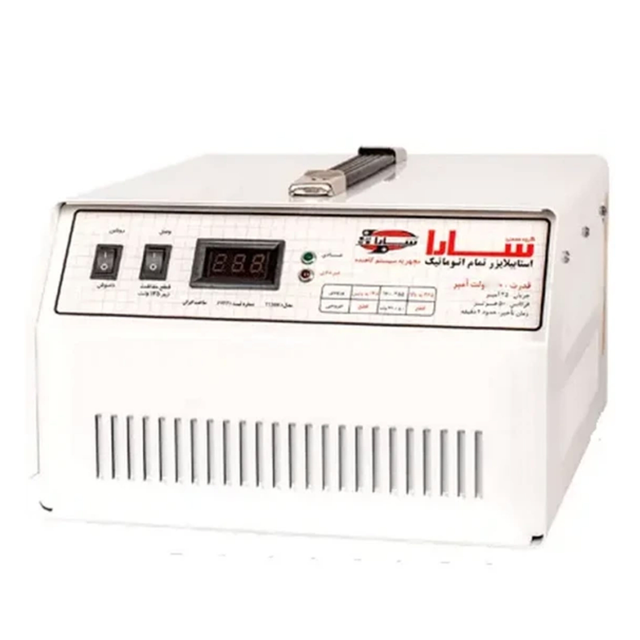 استابیلایزر سارا ۱۲۰۰۰ ولت آمپر | استابلایزر یا تثبیت کننده ولتاژ در زمان افت یا افزایش ولتاژ برق شهر از محدوده ۲۲۰ ولت، ولتاژ را اصلاح کرده و به سطح ۲۲۰ ولت بر میگرداند و از دستگاههای برقی بدون قطح برق محافظت میکند. | تنها در صورتی که ولتاژ از حد مجاز حداقلی کمتر و یا از سطح مجاز حداکثری بالاتر رود، برق خروجی را قطع میکند. | استابیلایزر سارا ۱۲۰۰۰ ولت آمپر با محافظ برای تضعیف، تقویت و تنظیم ولتاژ ورودی در پای کنتور برق ساخته شده است. این محصول به منظور تنظیم ولتاژ برق منازل یا مکانهایی که به کنتورهای تا ۵۰ آمپر متصل میشوند و وسایلی از جمله کولرهای گازی (اسپلیت)، ماشین لباسشویی و ظرفشویی، جارو، سماور، پمپ آب و دیگر وسایل برقی مشابه طراحی و ساخته شده است.