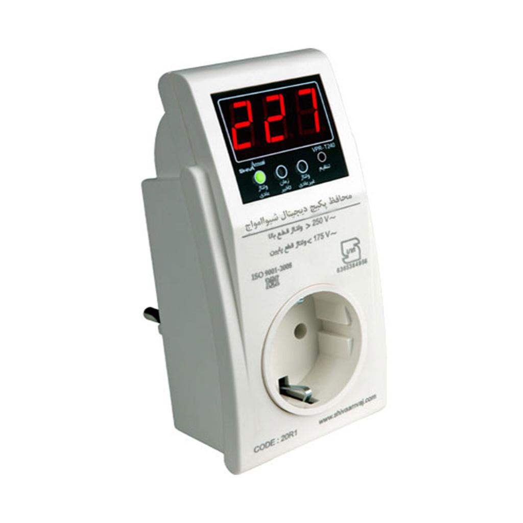 محافظ پکیج میکروپروسسوری مدل VPR-T4 کد 20R1 شیوا امواج | محافظ پکیج میکروپروسسوری مدل VPR-T4 کد 20R1 شیوا امواج با رعایـت اصول استاندارد، وسیله‌ای مناسب برای حفاظت پکیج‌ها و لوازم خانگی بدون کمپرسور در برابر افزایش، کاهش و نوسانات ولتاژ برق است. | • قابلیت تنظیم مقدار ولتاژ قطع پایین و ولتاژ قطع بالا | • سه عدد نمایشگر برای اعلام | • سبز: ولتاژ عادی | • زرد : زمان تأخیر | • قرمز: ولتاژ غیرعادی | • نمایش ولتاژ شبکه: حالت عادی | • Our به صورت چشمک زن : افزایش ولتاژ | • Und به صورت چشمک زن: کاهش ولتاژ | • شمارش معکوس زمان: زمان‌گیری تا وصل برق | • دارای پریز ارت دار | • دارای نشان استاندارد ملی | • طراحی زیبا و منحصر بفرد