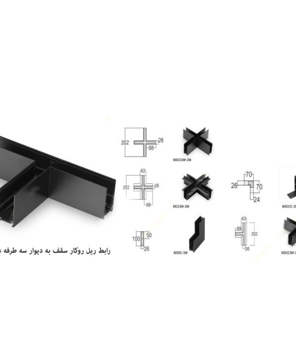 رابط ریل روکار سقف به سقف سه طرفه شعاع مدل SH-MSCC3W-2M